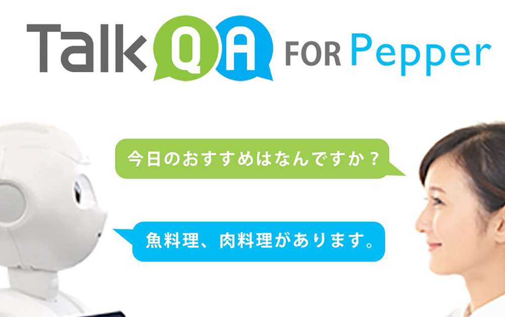 IBM Watson(TM)を活用したチャットボットサービス「TalkQA(トークQA)」と連携して、音声での質問に対しPepperが適切な回答を行います。学習していない質問には雑談で対応できます。これまでのPepperでは回答することが難しかった質問にも TalkQA for Pepper を用いることで答えられるようになります。