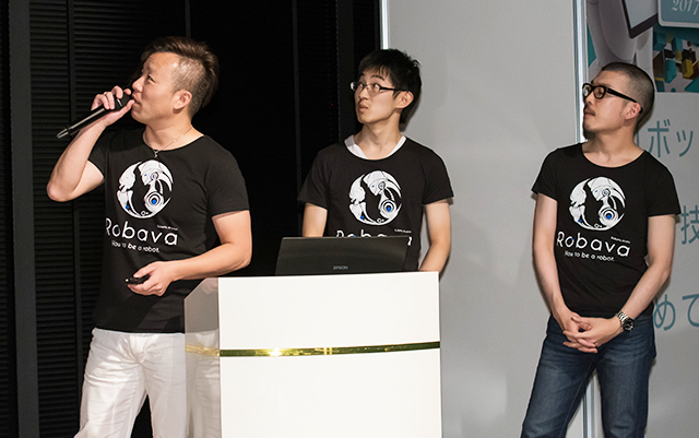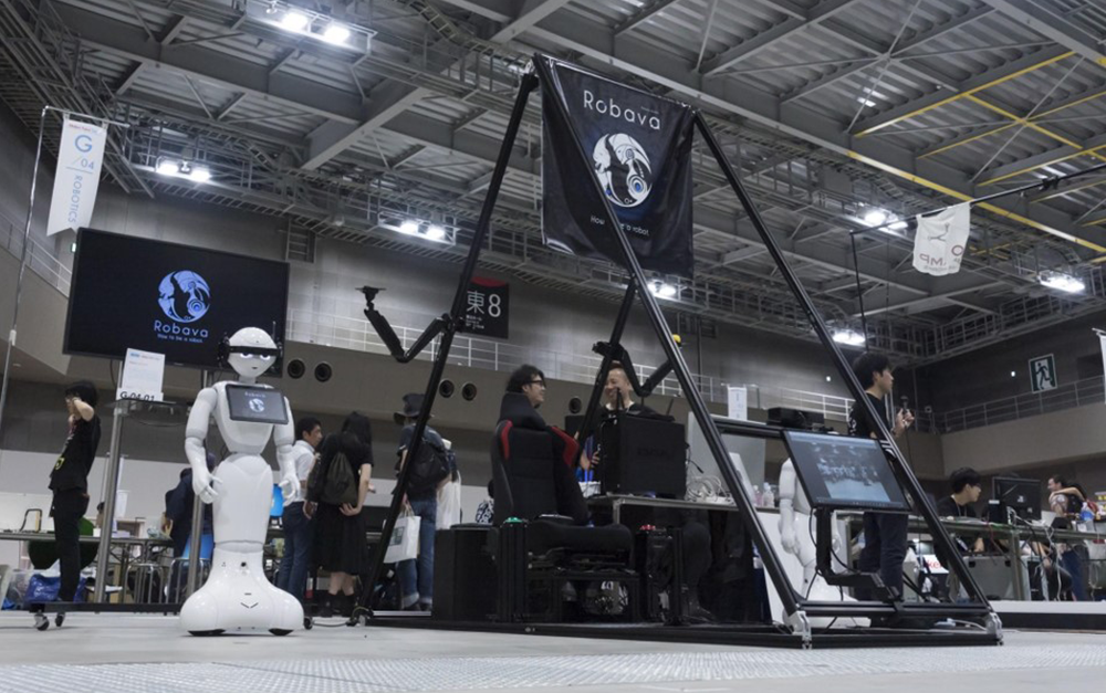 ロボットに取り付けたカメラやモーションセンサー、独自サイクルシステムにより、離れているロボットを操縦、バーチャルリアリティにより自身がロボットになるエンターテイメントアプリ
