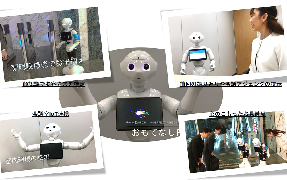 日本生まれのPepperだからこそ可能な、お客様の“ココロ”を読み取り、日本人特有のおもてなしをRobotにて実現したアプリ。実体験から生まれたこのアプリは、来社されたお客さまに感動を与え、働き方改革をサポートします。Pepperアイディアソンで集結したメンバーによる可能性が無限大のアプリは、Perfect Personal “OMOTENASHI” Pepperを目指しこれからも進化し続けます!