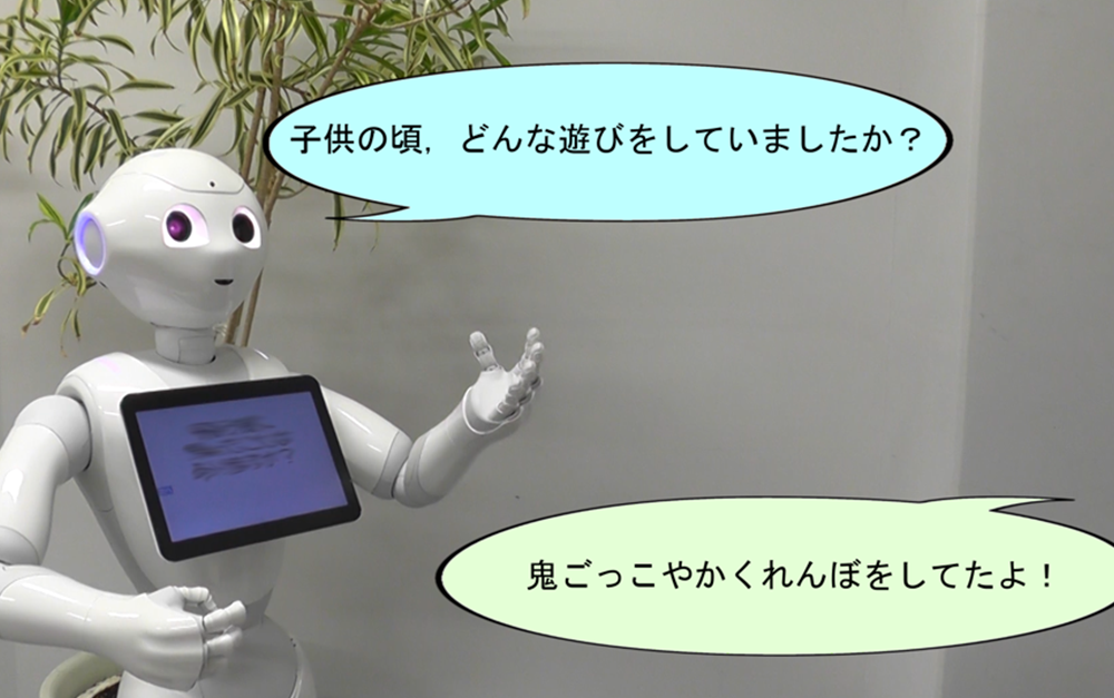 「継続対話システムEDAHA」は、認知症の人を支援するアプリです。このアプリは、回想法を意識させる回想法システムと、幅広く深みのある対話を実現する関連話題提示システムの2種類の対話システムから構成されます。Pepperと継続的な対話を楽しむことができます。